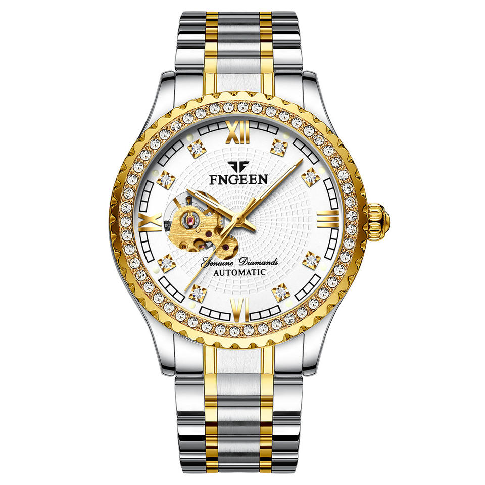 Oem Odm Logo Stainless Steel Golden Fashion Luminous Skeleton WristWatch Waterproof Men's Fully Automatic Mechanical Watch
