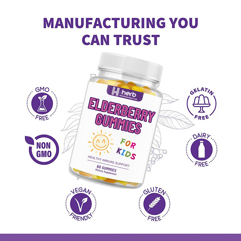 Oem Organic Elderberry Gummy Candy Vitamins with Natural Fruit Flavors for Kid Health Support