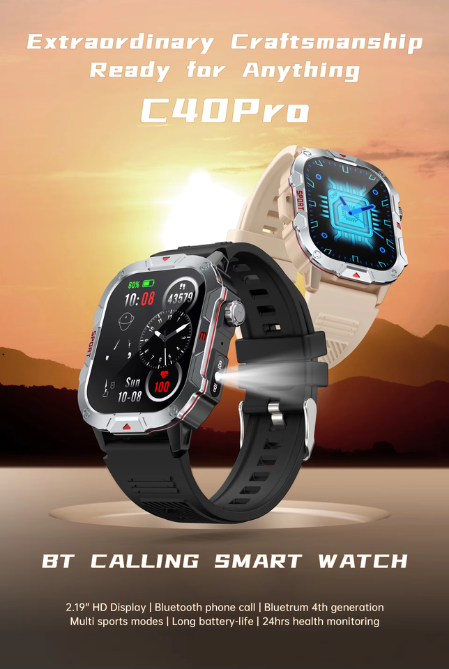 Oem logo C40pro 2.2inch Full Touch Screen Waterproof BT Call Fitness Tracker Outdoor LED Relojes Smart Watch for Men