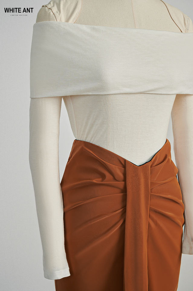 Off-the-shoulder Long-sleeved Women's Blouses & Shirts Top With Puffy Chest RACHEL KNIT TOPS Good Quality 30% Wool