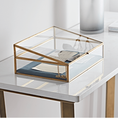 Office Decorative Card Box Golden Brass Border Vintage Glass Jewelry Trinket Box Customized Storage Jewellery Box Gold Finished