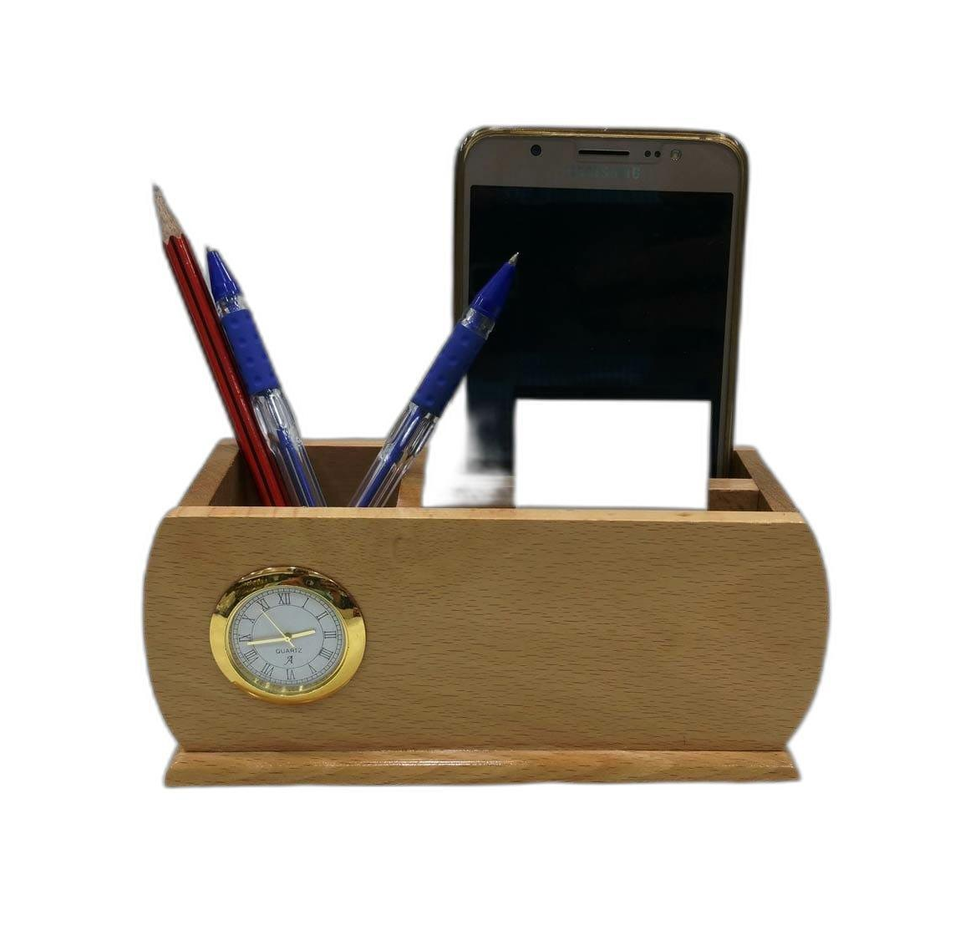 Office Table Room Wood Pen Holder with Watch High Quality & Best Packing Good Price at Lowest Cost Product