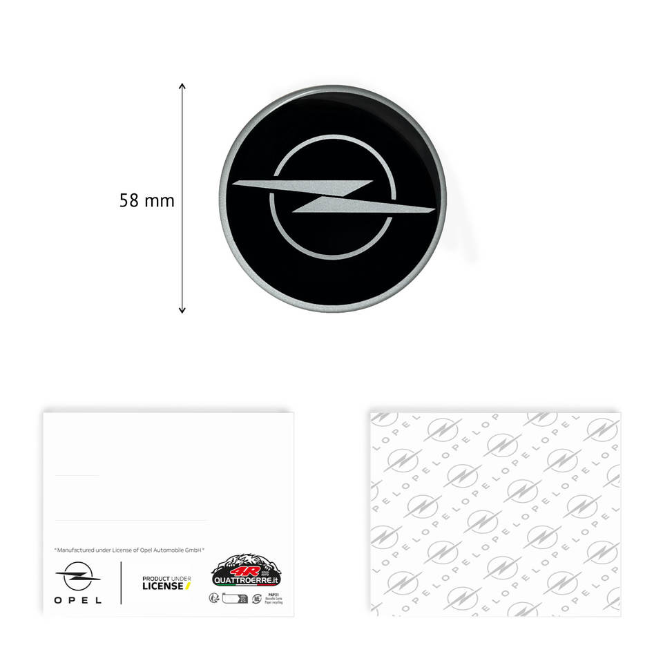 Official Opel Logo 3D Chrome Emblem Decal Self-Adhesive Reflective 58 MM for Luxury Cars and Trucks Black Surface