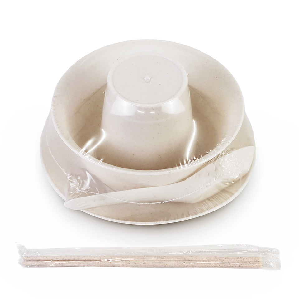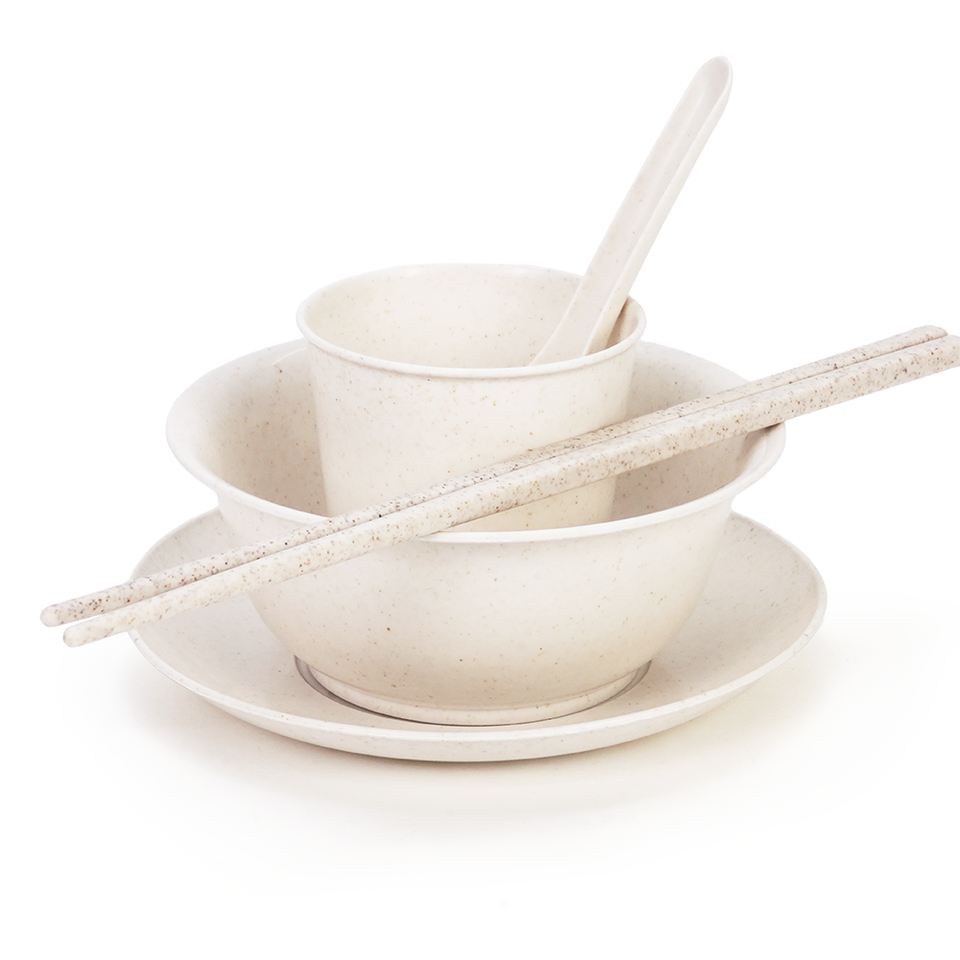 Ohalo Taiwan's Best-Selling Eco-Friendly Ivory Rice Husk Disposable Tableware 4-Piece or 5-Piece Set for Camping