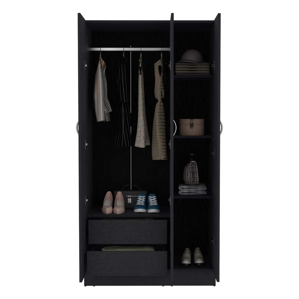 Ohio Black Armoire Wardrobe with 3-Doors 2-Drawers 4-Tier Shelves