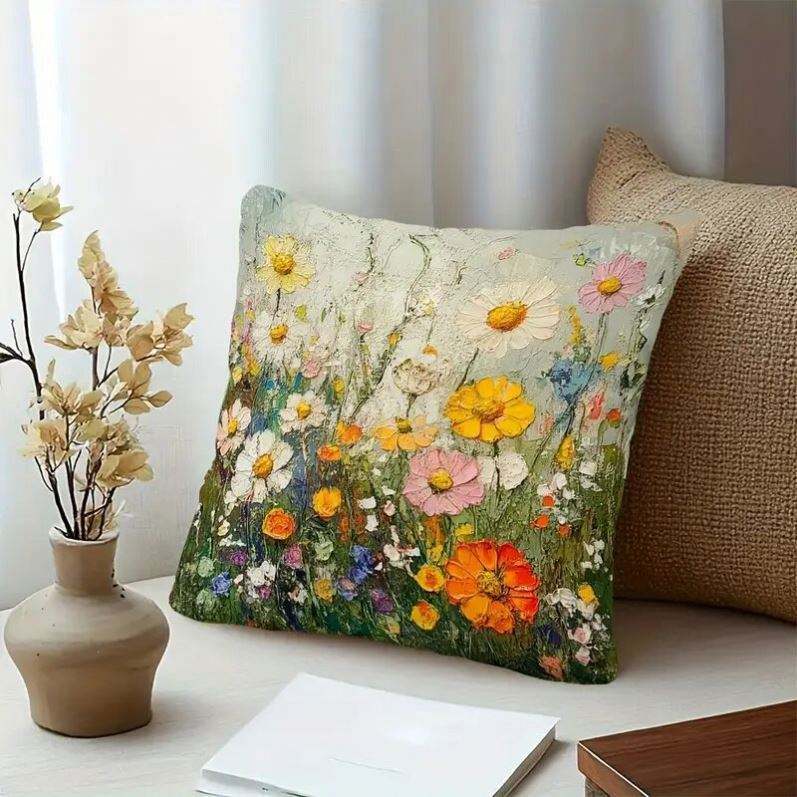 Oil Painting Flower Design Cushion Single-Sided Printing Throw Pillowcase Household Decoration 45Cm Pillow Cover Wholesale
