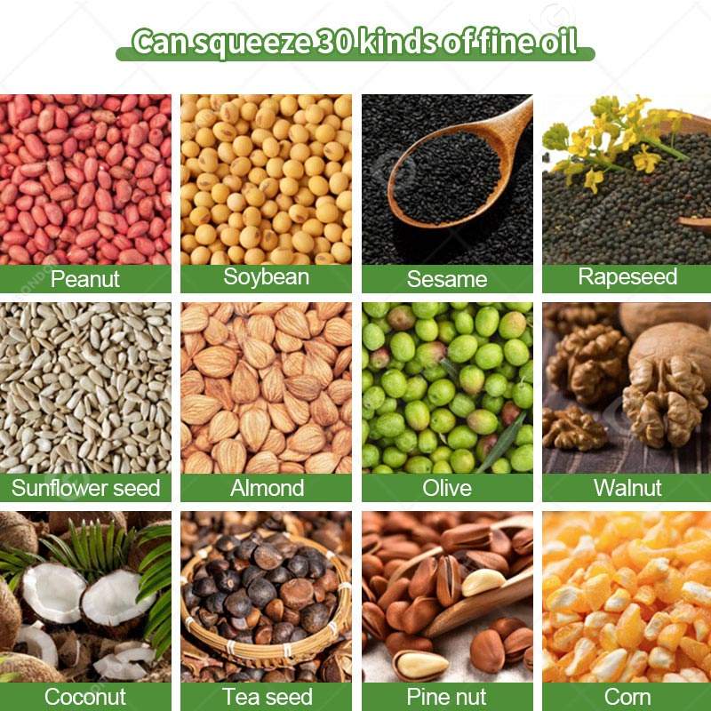 Almond Oil, Avocado Oil, Basil Oil, Coconut Oil, Corn Germ Oil, Cotton Seed Oil, Flax Seed Oil, Groundnut Oil, Mustard Oil, Olive Oil, Palm Oil, Peanut Oil, Pinenut Oil, Pumpkin Seed Oil, Rap Seed Oil, Rapeseed Oil, Safflower Seed Oil, Sesame Oil, Soybean Oil, Sunflower Seed Oil, Tea Seed Oil, Virgin Coconut Oil, Walnut Oil, Wheat Germ Oiloil type