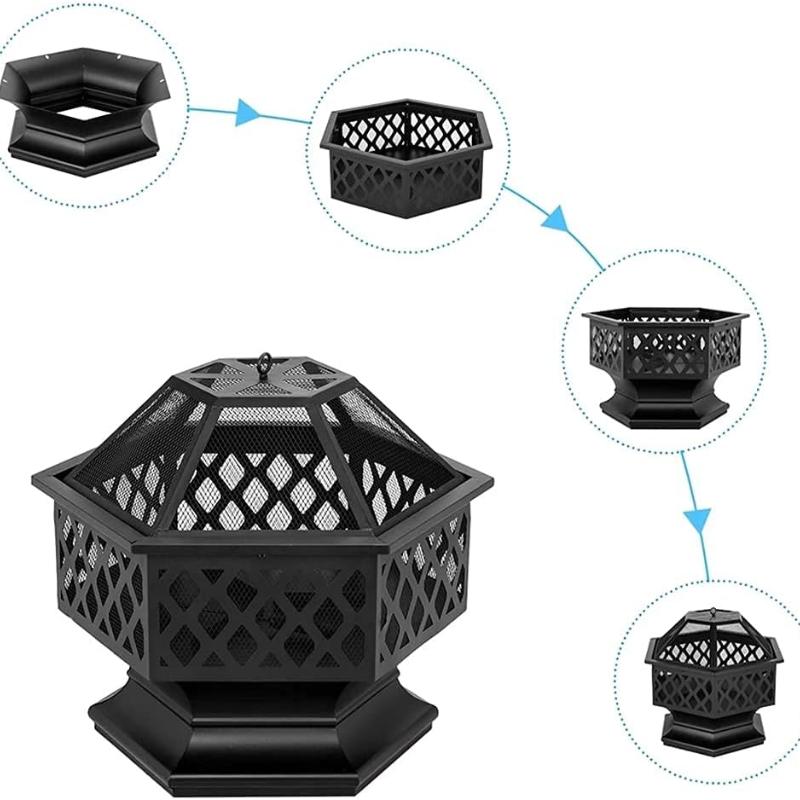Oil-Rubbed Bronze Hexagon Steel Fire Pit Outdoor Wood Burning Fireplace for Patio Garden Decor Travel Factory Wholesale Product