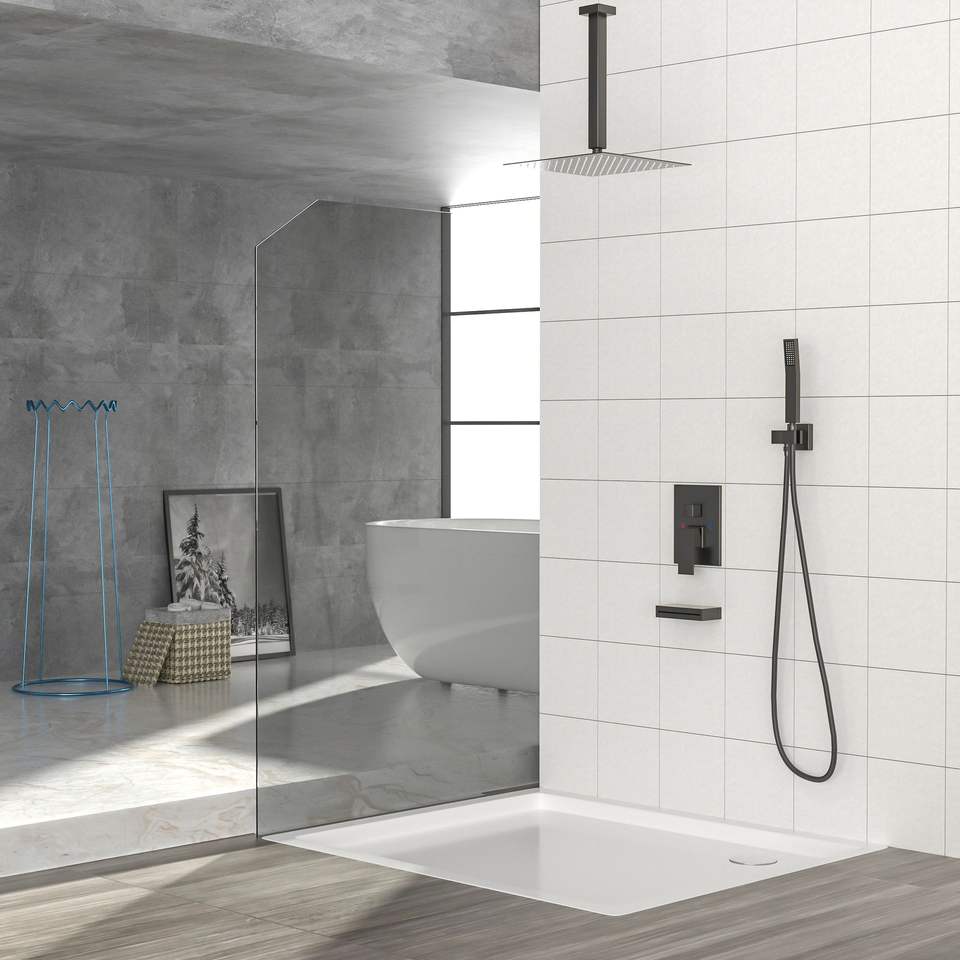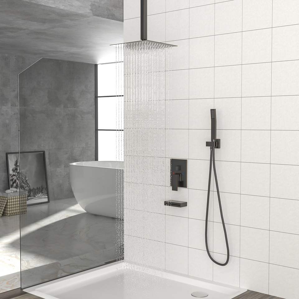 Oil Rubber Bronze 12-Inch Ceiling Mount Square Shower System Waterfall Tub Spout Rough-in Valve Bathroom Sets Model D0100H7W1W2