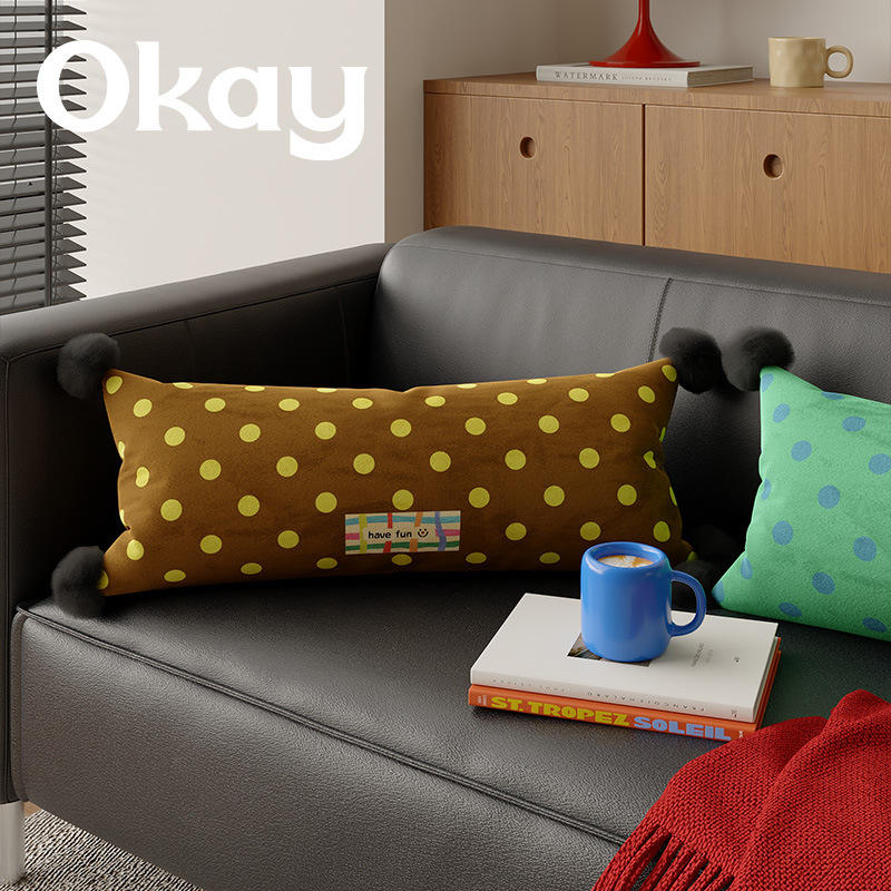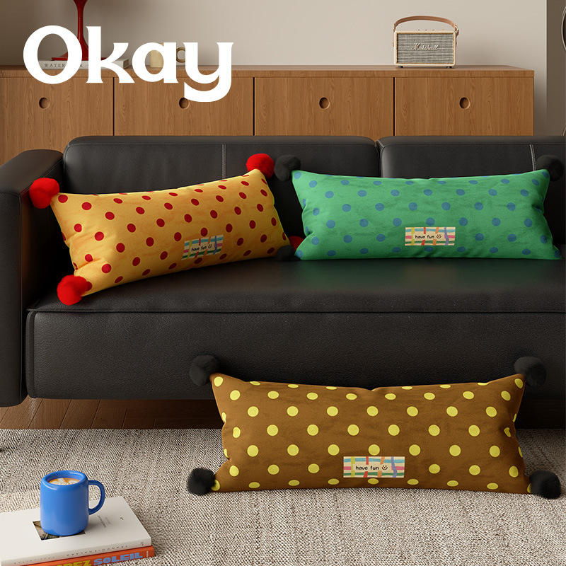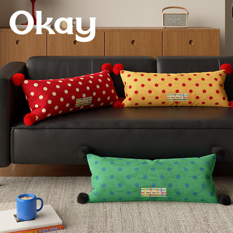 Okay Polka Dot Lumbar Pillow Oblong Washable PP Cotton Filling Red Yellow Green Brown Living Room Sofa Car Pillow