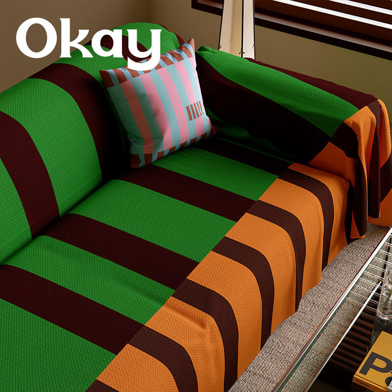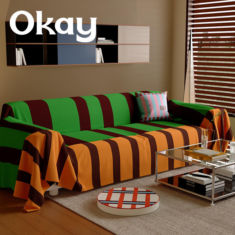 Okay Retro Striped Sofa Cover Double Sofa Imitation Linen Elastic Stretch Full Coverage Pad Type Jungle Walk Retro Film Set
