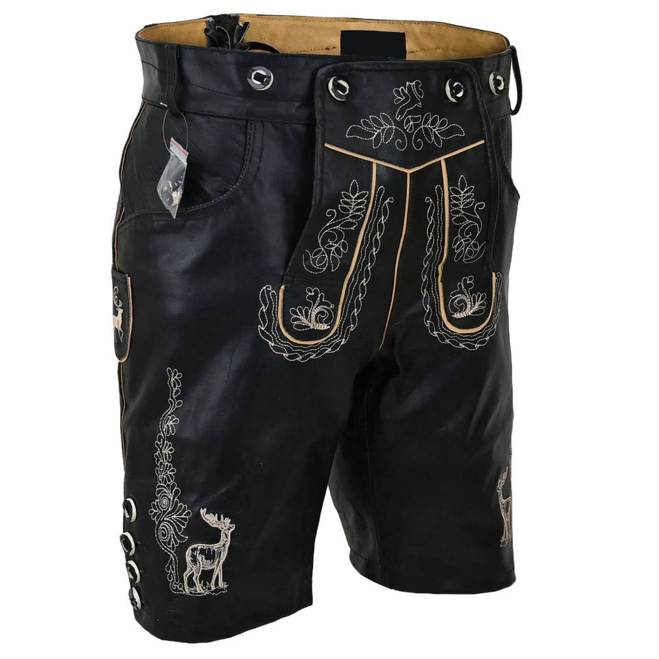 Oktoberfest Costume Bavarian Lederhosen Short for Men Albert Black German Outfit pantalons en cuir