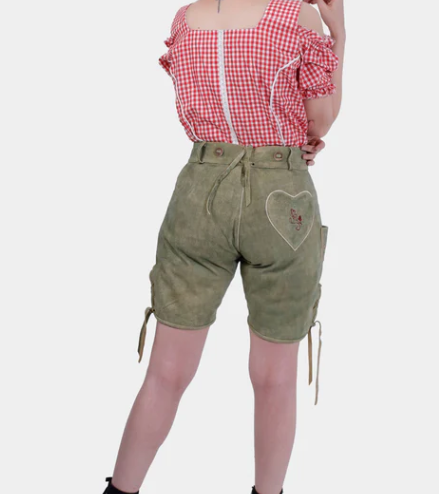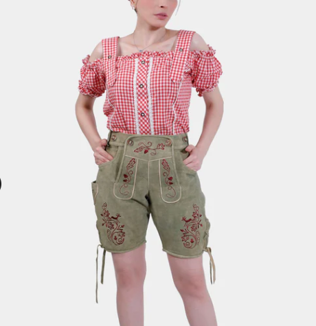 Oktoberfest Festival German Trachten Women Goat Suede Leather Cheap Wholesale Bavarian Lederhosen, German Leather Shorts