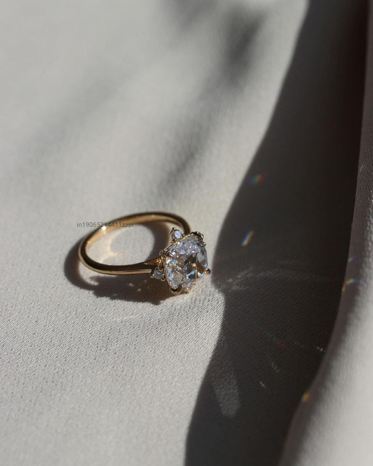 Old Mine 3 Ct Cushion Moissanite Diamond Elongated Cushion Cut with Hidden Halo Antique Style Solitaire Moissanite Ring for Her