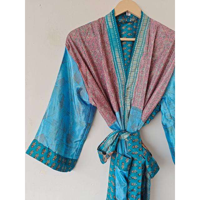 Handmade Long Kimono Satin Robes Soft Thermal Wedding Bride Bridesmaid Sleepwear Personalized Summer Spring Old Sari Silk Autumn