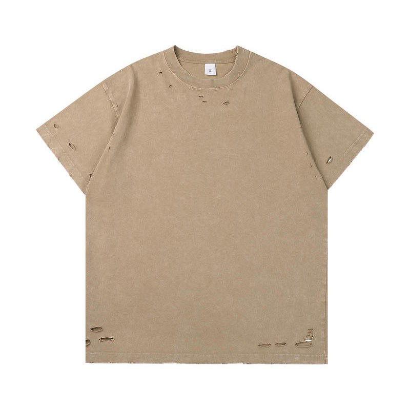 Old School American Fashion Batik T-Shirt for Men 300g Heavy Washing Knitted Loose Oversize Short Sleeve Halloween T-shirt
