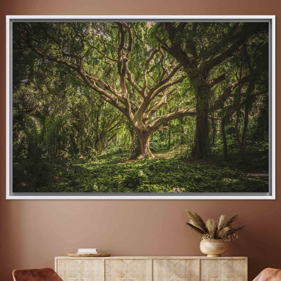 Old Tree Landscape Canvas Print: Elegant Minimalist Wall Art,WHITE FRAMED CANVAS