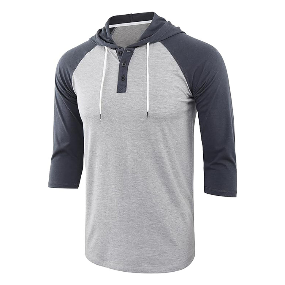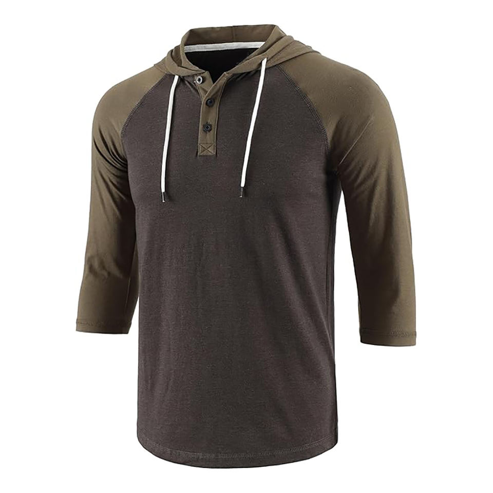 Olive & Dark Brown Solid Pattern Raglan Hoodie Tee 100% Cotton Quarter Sleeve Henley Style Casual Winter Casual Style