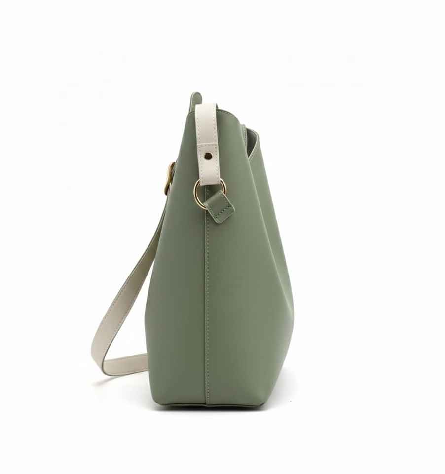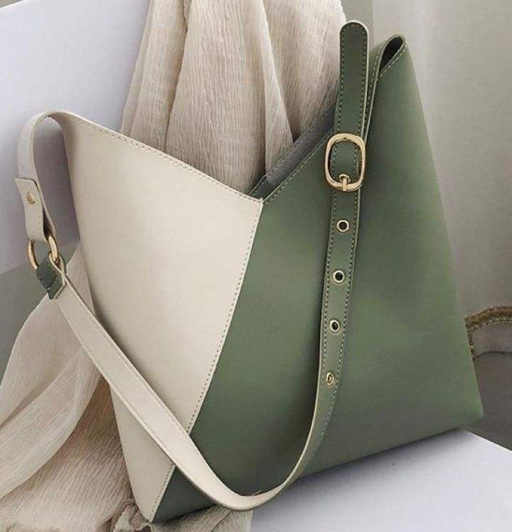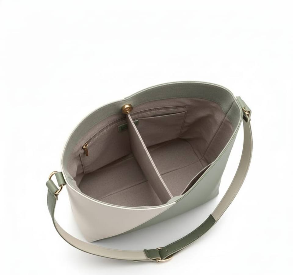 Olive Green Cream White Leather Tote Bag Women Two-Tone Designer Fashion Candy Pattern ZIP Closure Large Work Shoulder Handbag