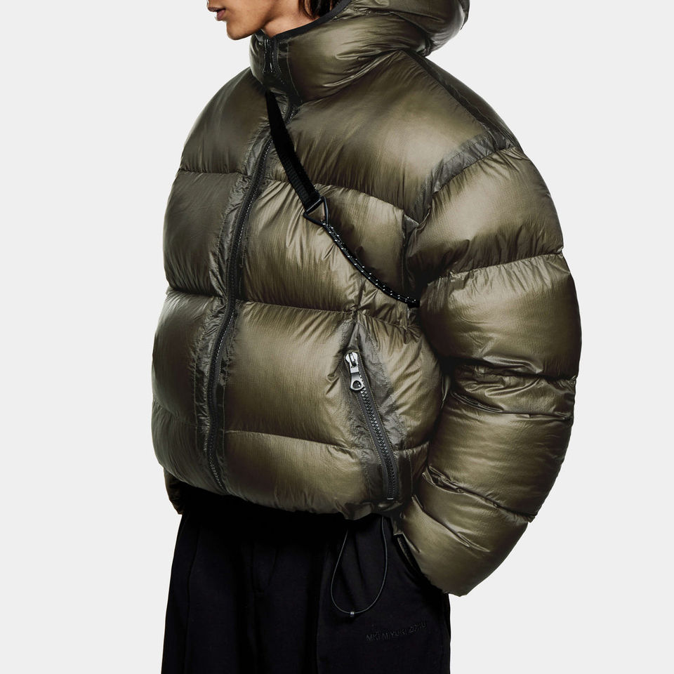 Olive Green Oversized Puffer Jacket Men Boxy Short Winter Coat Heavyweight Bubble Down Parkas Streetwear Men Oversize Puffer