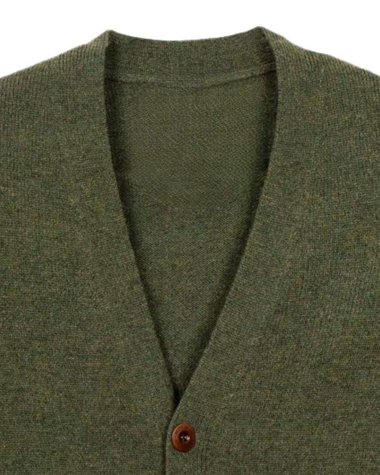 Olive Green Soft Knit Men Cardigan Sweater With Front Pockets And Comfortable Button Closure For Winter Casual Wear