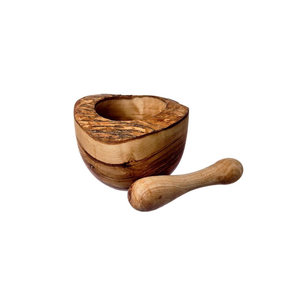 Olive Wood Rustic Mortar and Pestle - 5.5". Large Size Mortar and Pestle Set for Grinding Herbs, Spices, Salsa Etc