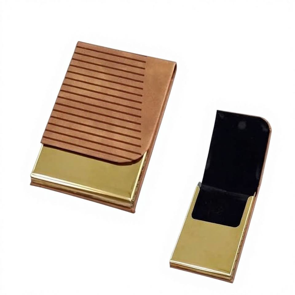 Olivia Best Design Handmade PVD Coated Business Card Holder with Premium Leatherette Custom Logo Option Unbeatable Price