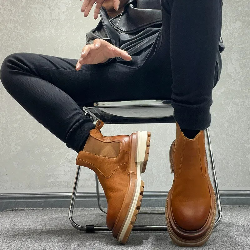 Olunpo Martin Boots British Retro Fashion Lightweight Work Boots Short Tube Big Yellow Boots Thick Sole Men's