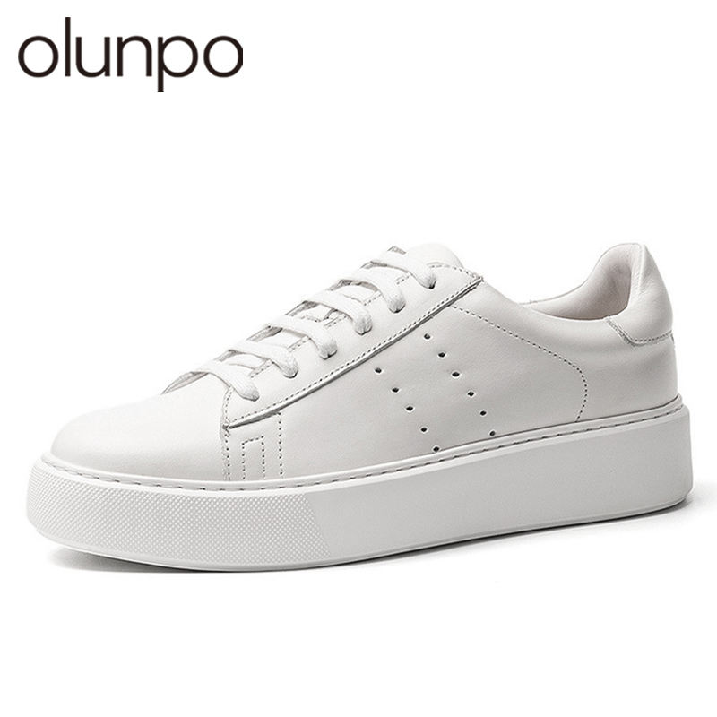 Olunpo Men's Casual Shoes, Genuine Leather, Business Casual, Thick-soled, Height-enhancing White Shoes