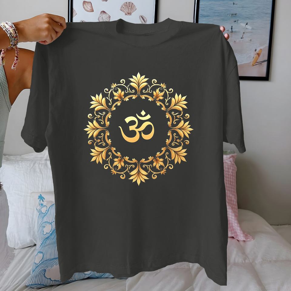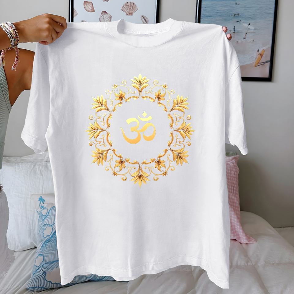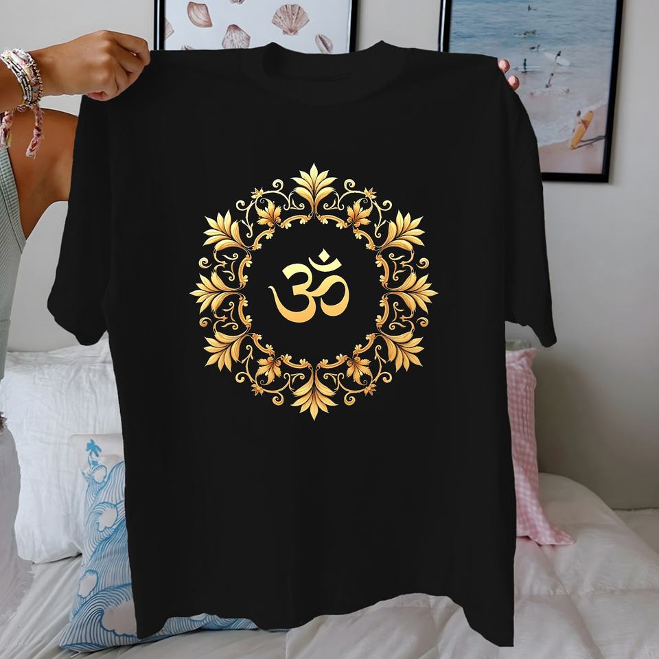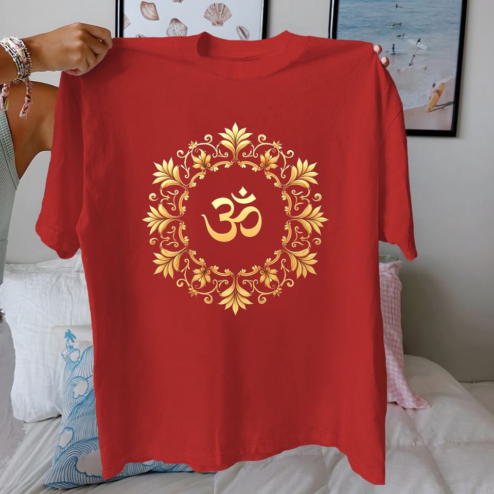 Om symbol with ornate frame pure cotton women's Tshirt comfort fit