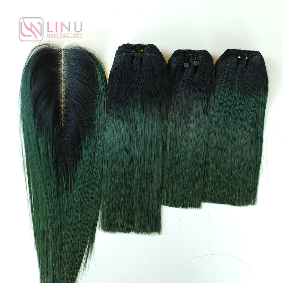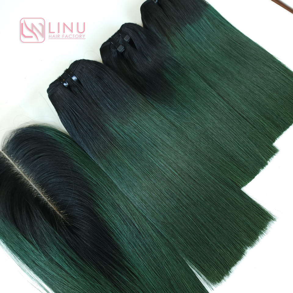 Ombre Green Color Bone Straight Hair Extensions Raw Vietnamese Virgin Hair Bundles Unprocessed Genius Weft with Lace Closure