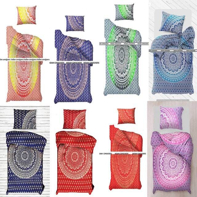 Ombre Mandala Bohemian Twin Size Bedding Set Pillow Case Cotton Reversible Quilt Duvet Cover Home Decor By Indian Consigners