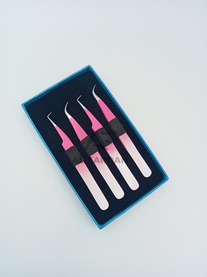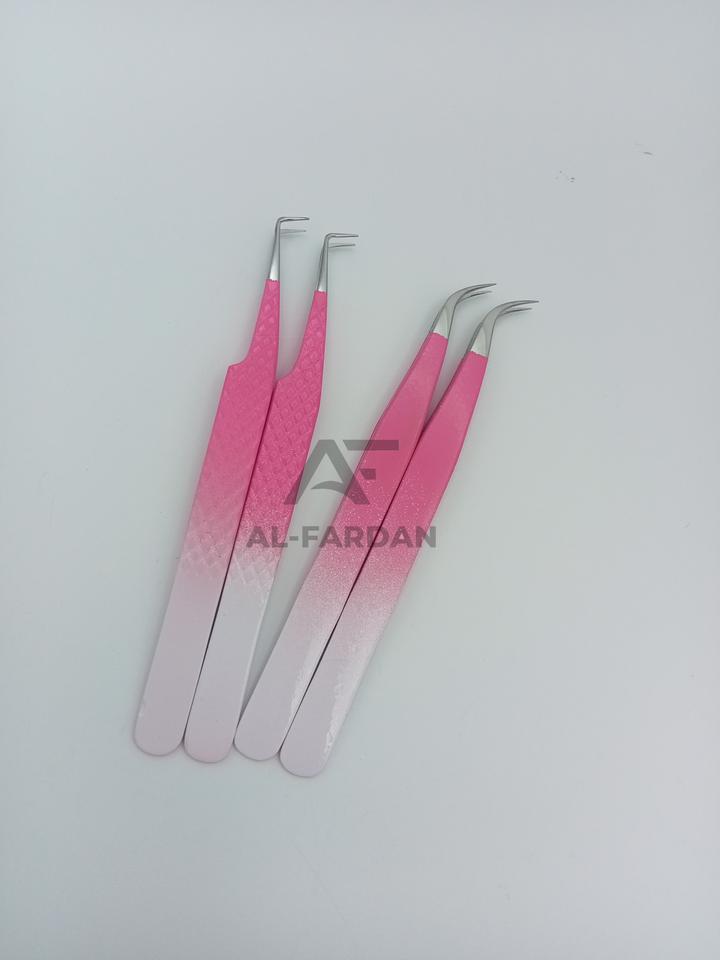 Ombre Pink & White 90 Degree Curved Fiber Tips Solid Stainless Steel Eyelash Extension Tweezers