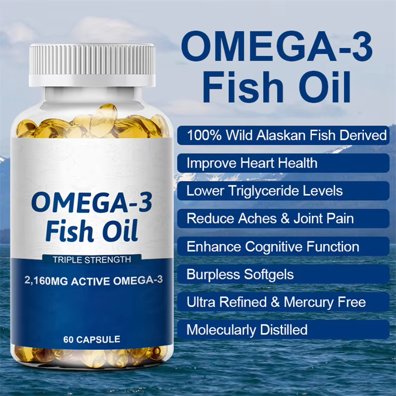 Omega-3 Fish Oil Softgel Capsules for Adults Antioxidant Cardiovascular Support Brain Nervous System Protection Eye Health Care