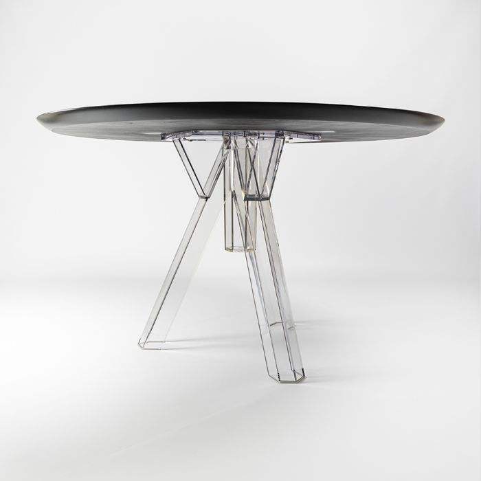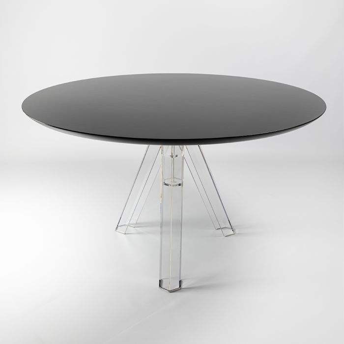 Ometto Design Transparent Round Polycarbonate Table with Black Top Assembled for Dining Sizes 90/120 Diameter Model OMT100ENN3