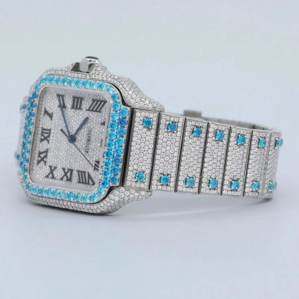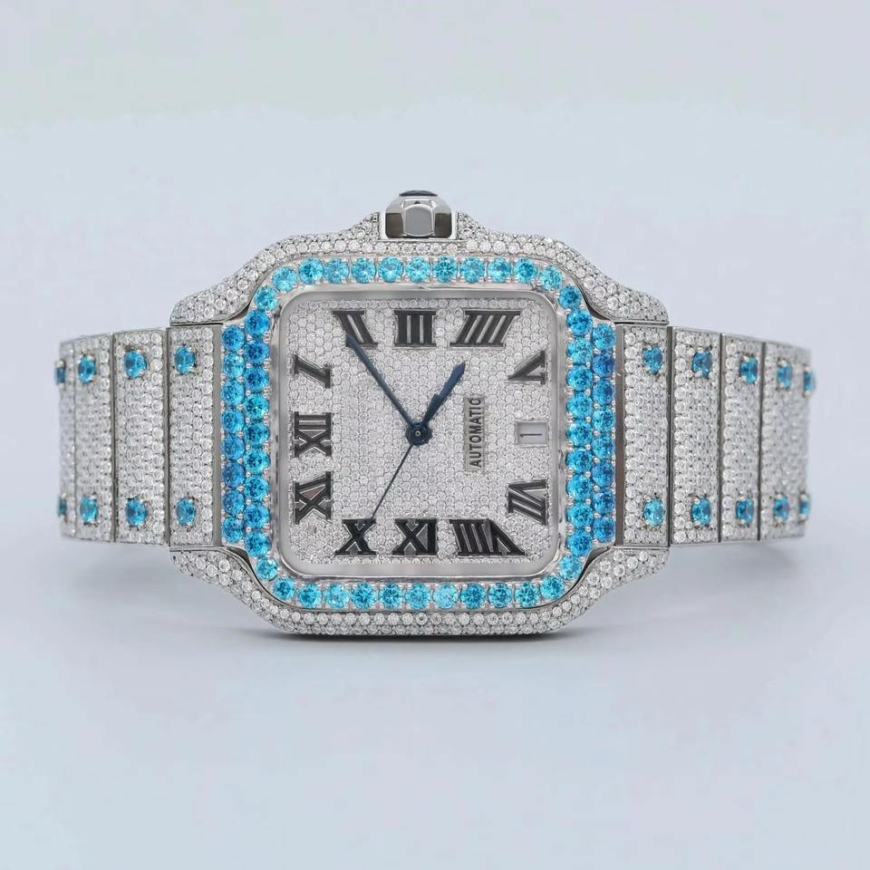 On-Demand Flashy Iced Men's Quartz Movement Watch 40mm Stainless Steel Moissanite Crystals Fashionable Style Available
