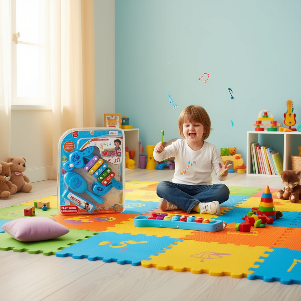 On Teck Sa De Cv Musical Set Xylophone Shaker Harmonica 12 Units Kids Educational Playtime Toy Plastic Blister Pack