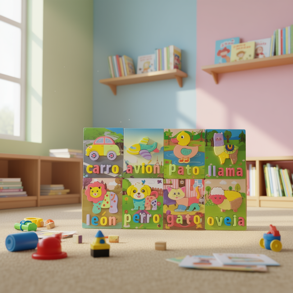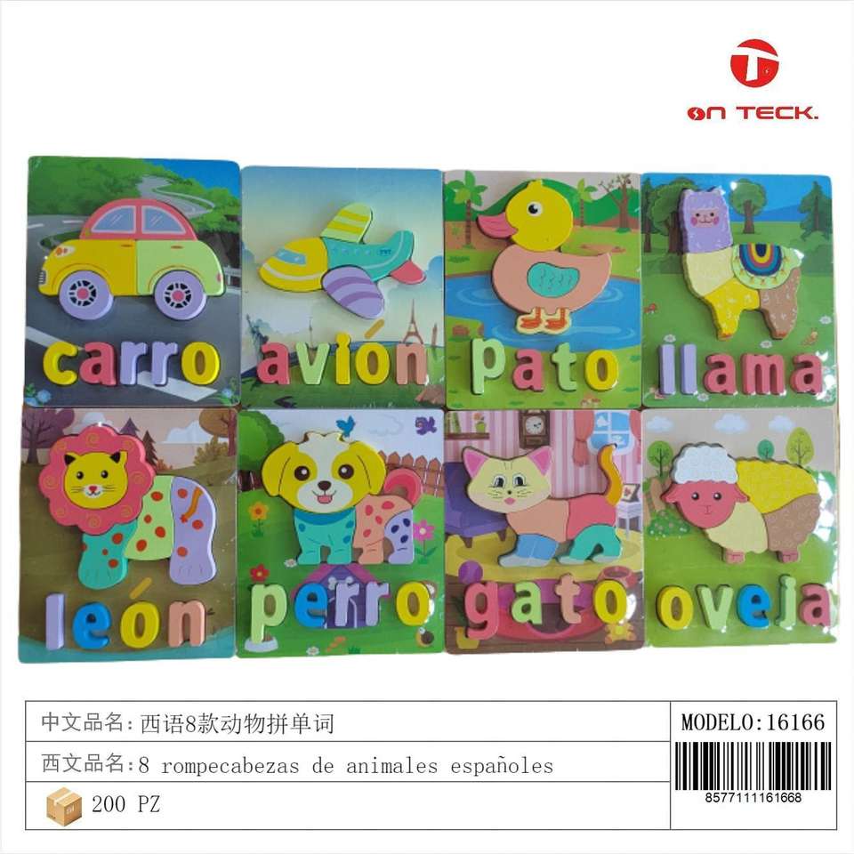 On Teck Spanish Animal Word Puzzle 12Pcs Wooden Educational Toy For Kids Learning Activity Age 3+