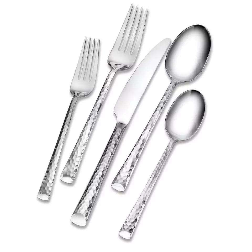 On sale polished flatware set with designer handles surface reflects light beautifully enhancing table aesthetics