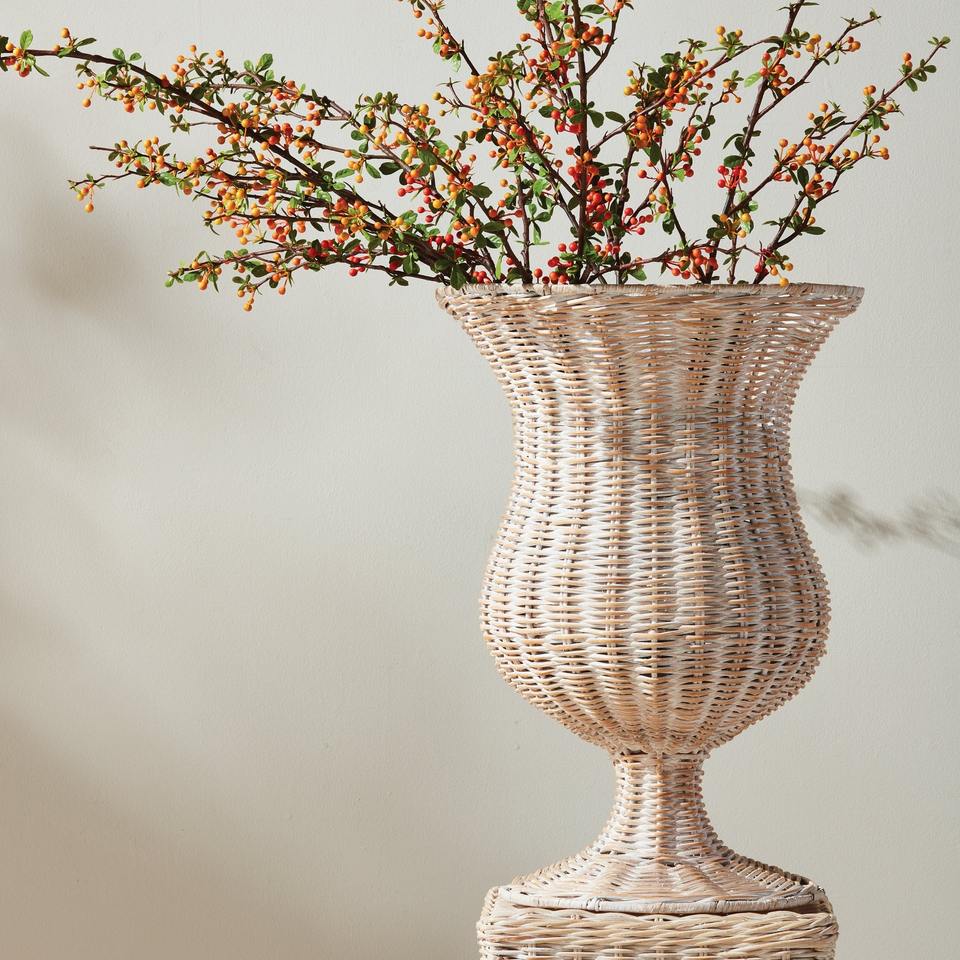 On-sale stylish footed rattan urn for modern tabletop flower decor, rattan vase for centerpieces
