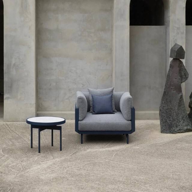 Onde Round Outdoor Table Modern Patio Living Room Furniture Contemporary Design Aluminum Frame Weather Resistant Accent Table