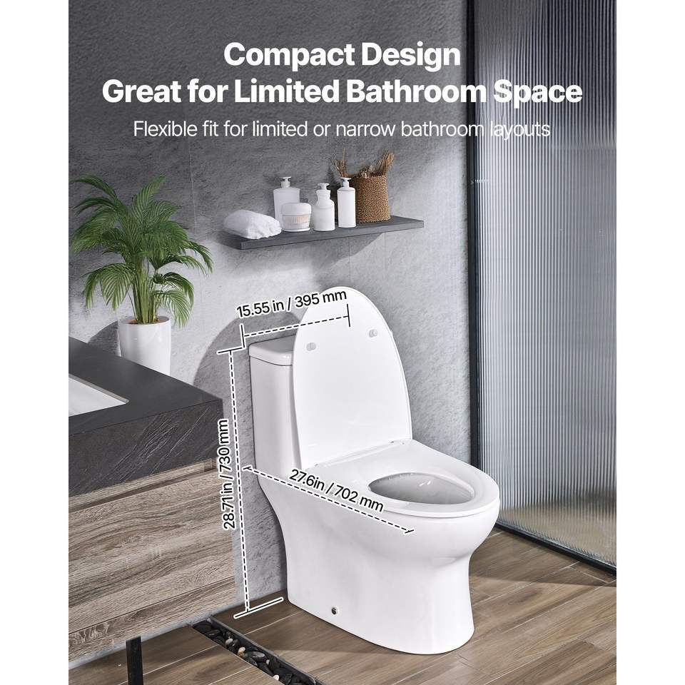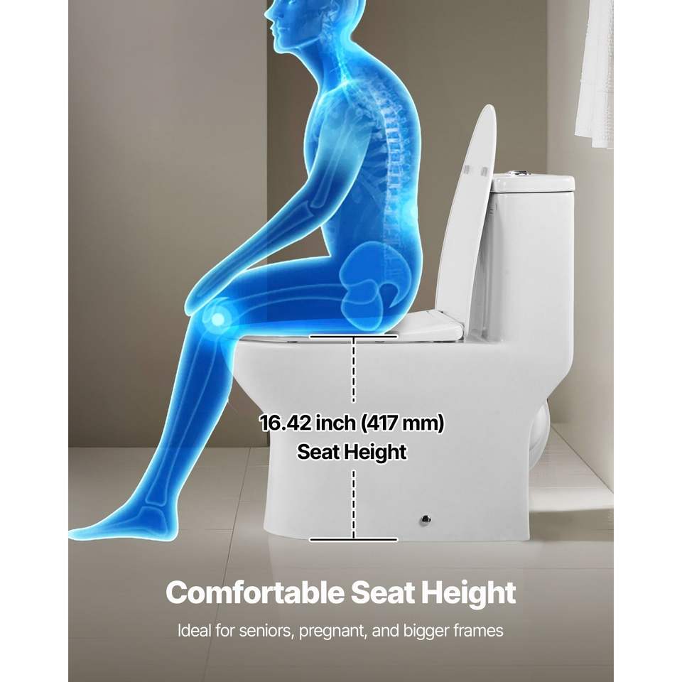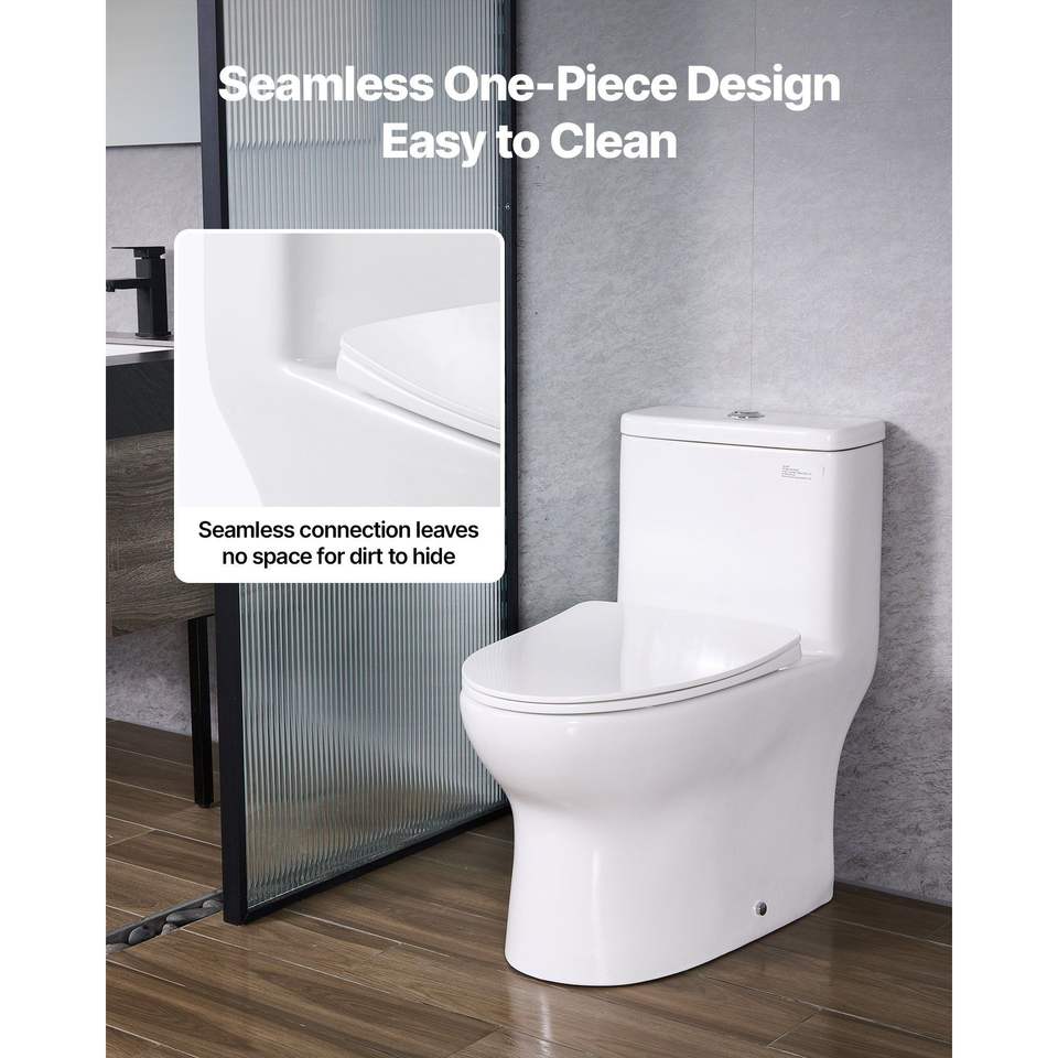 One-Piece Dual-Flush 1.0/1.28 GPF Toilets Elongated Vortex Design Comfortable 12-inch Chair Seat Easy-Clean Skirted White +