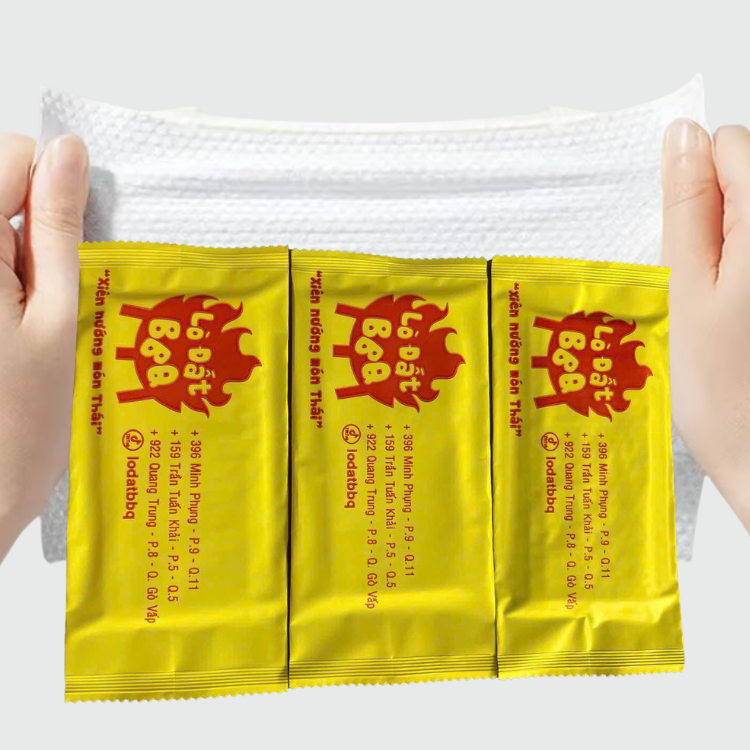 One Piece Wet Cleansing Wipes Sealed Sachet Portable and Hygienic Made in Vietnam for Food Delivery Services