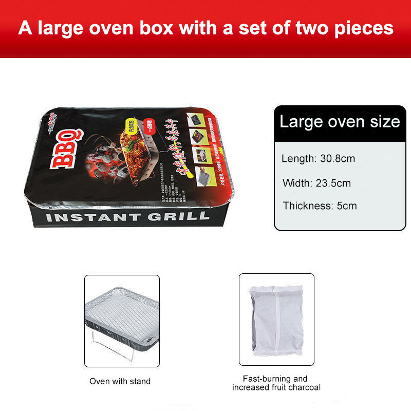 What's inside:Stand, charcoal, fire starter paper, baking grid