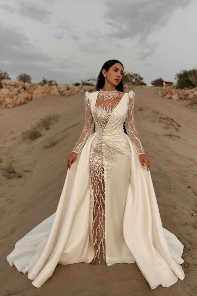 One-piece Long Sleeve Elegant Anti-Static Breathable Full-Length A-Line Evening Gown Plus Size Formal Wear Hand Front