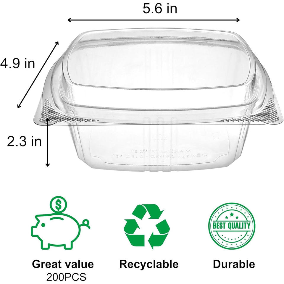 One-piece Plastic Box Blister Transparent Salad Packaging clear Disposable Custom Hinged Clmshell Food Container