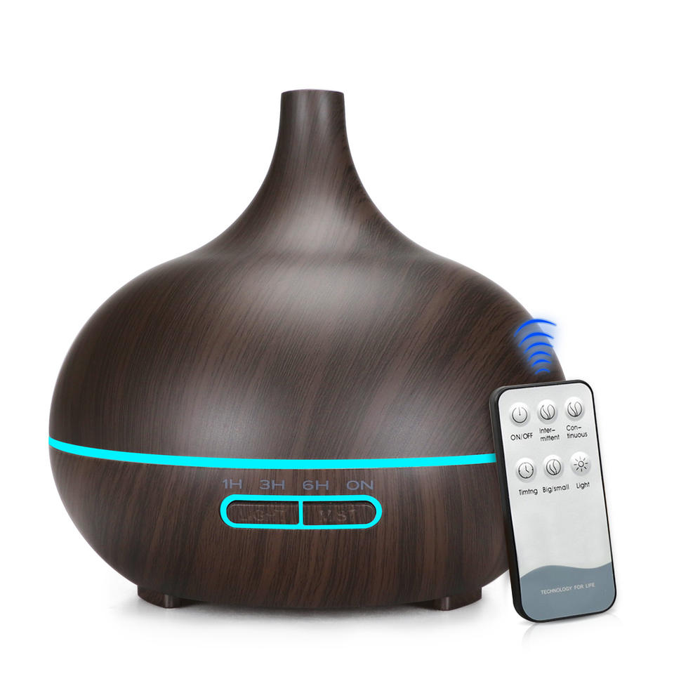 Onion Head Wood Grain Aroma Diffuser 400ml Remote Control Humidifier Essential Oil Atomizer For Home Use