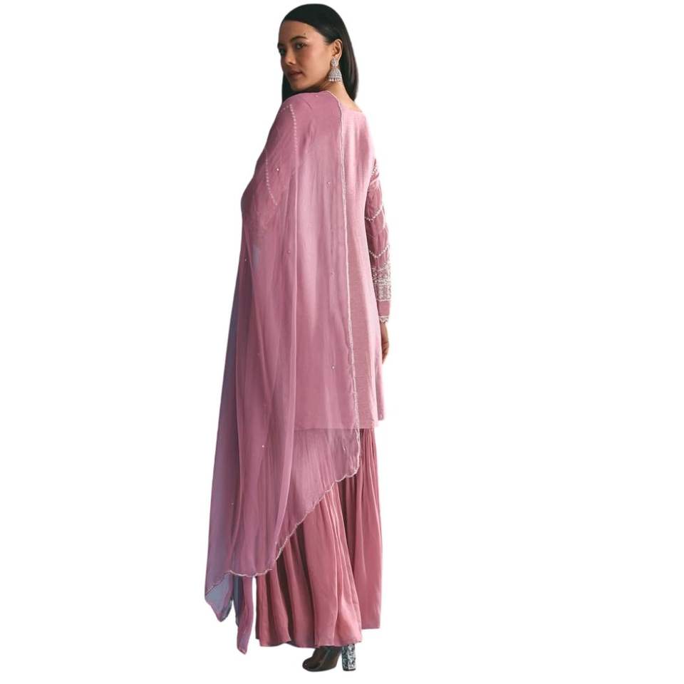 Onion Pink Silk Kurta Sharara Suit with Cut Dana Moti Embroidery for Women Wedding Party Wear Indian Festive Outfit