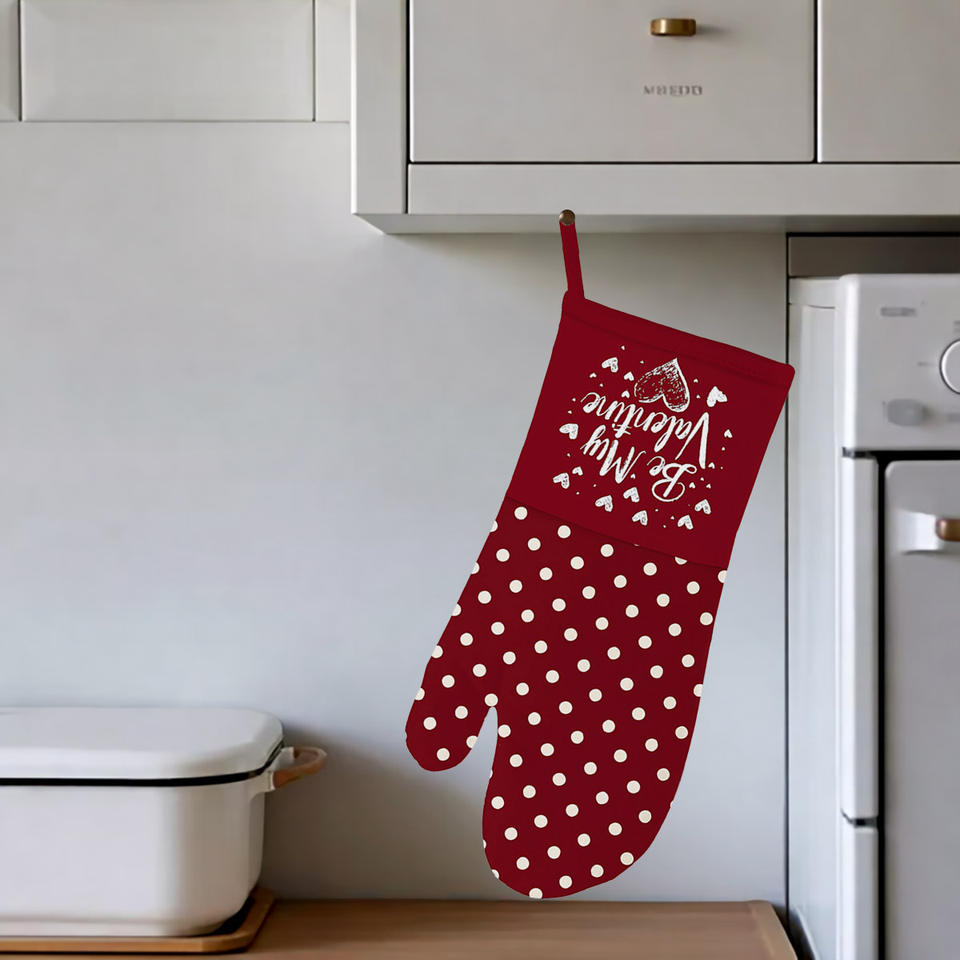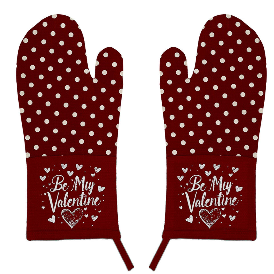 Online Best Selling Kitchen Glove Oven Mitt 100% Cotton extra Thick Printed Gloves at Wholesale Price for Valentine
