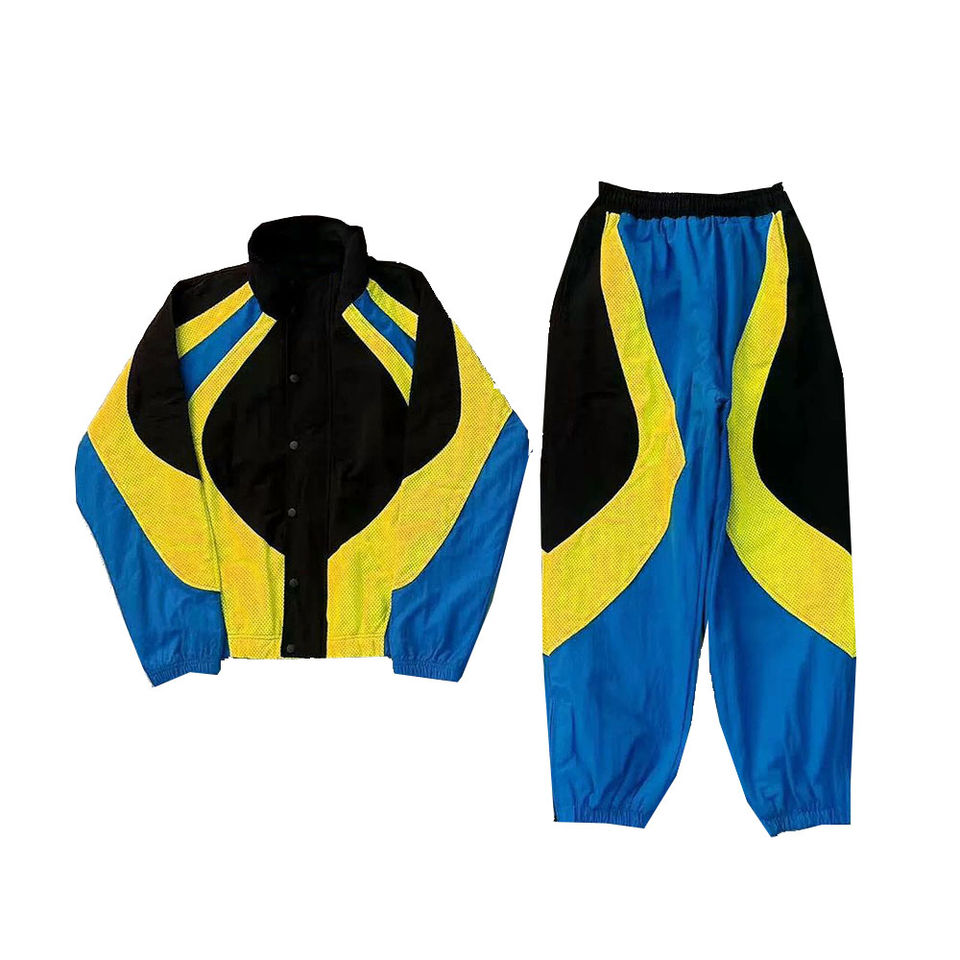 Online Custom Made logo Jogger Sets Oversized Multi Patchwork Nylon Jacket and Pants Jogger Sets Windbreaker Tracksuit for Men